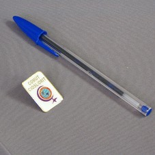 BÓTON RETANGULAR (2X3 CM) EM METAL DOURADO, COM FUNDO BRANCO. POSSUI DESENHO DO GLOBO MUNDI DENTRO DE UMA SEMI-CIRCUNFERÊNCIA LILÁS E 'COMUT / CIOSL/ORIT'.