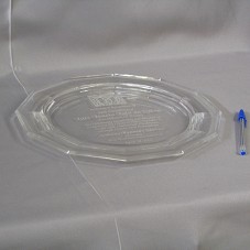 PRATO RASO (30,5 CM), DE BORDA RECORTADA EM DOZE LADOS, EM VIDRO, COM GRAVAÇÃO JATEADA NO FUNDO, ' IN GRATEFUL RECOGNITION OF HIS EXCELLENCY LUIZ INACIO LULA DA SILVA / PRESIDENT OF BRAZIL / GRACIOUSLY SUPPORTING OUR MISSION OF ENHANCING THE OPPORTUNITIES AVAILABLE TO PEOPLE WITH INTELLECTUAL DISABILITIES THROUGH ONE-TO-ONE FRIENDSHIPS / ANTHONY KENNEDY SHRIVER / FOUNDER / BEST BUDDIES INTERNACIONAL / APRIL 29, 2005', E LOGOMARCA DA INSTITUIÇÃO. ACONDICIONADO EM CAIXA VERDE-ÁGUA, COM A LOGOMARCA 'TIFFANY & CO.', NA TAMPA.