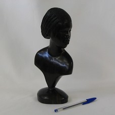 ESCULTURA (12X8X25,5 CM) EM ÉBANO. BUSTO FEMININO, PERFIL DE UMA MULHER NEGRA, COM CABELO EM COQUE. ESCULPIDA EM PEÇA ÚNICA.