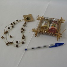 DOIS VIDROS DE 35 ML, CONTENDO CADA UM, SHAMPOO DE MANGA E DE PATCHOULY, DA MARCA 'JURUÁ', PRODUTO ARTESANAL DA 'CRU DA AMAZÔNIA'. ACONDICIONADO EM UMA PEQUENA PENEIRA DE PALHA, ACOMPANHANDO INFORMATIVO SOBRE O PRODUTO 'KIT JURUÁ'. ACOMPANHA COLAR CONFECCIONADO EM PALHA DE BURITI E SEMENTE DE AÇAÍ, COM ETIQUETA CONTENDO INFORMAÇÕES SOBRE O PRODUTO.