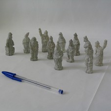 DOZE MINIATURAS (5,5 CM - ALTURA) DOS PROFETAS DE CONGONHAS (MG), ESCULPIDAS A CANIVETE EM PEDRA-SABÃO. ACOMPANHA TEXTO DE 'GLORINHA', DE 21/06/05, SOBRE O ESTADO DE MINAS GERAIS. ACONDICIONADAS EM CAIXA FORRADA COM PAPEL CONTENDO FOTOGRAFIAS EM PRETO E BRANCO, DA CIDADE DE MARIANA - MG. NA TAMPA DA CAIXA, ETIQUETA COM INFORMAÇÕES SOBRE AS ESCULTURAS E A PRÓPRIA CAIXA.