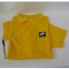 CAMISA (TAM XXG) GOLA PÓLO, NA COR AMARELO, COM A LOGOMARCA DOS 'CORREIOS' NA PARTE FRONTAL. NAS MANGAS, A MESMA LOGOMARCA E A BANDEIRA DO BRASIL.