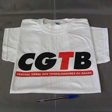 CAMISETA (TAM GG), EM MALHA BRANCA, DE MANGA CURTA. NA FRENTE, ESTAMPA EM PRETO E VERMELHO, COM A INSCRIÇÃO 'CGTB / CENTRAL GERAL DOS TRABALHADORES DO BRASIL'.
