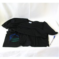 CAMISETA (TAM G) EM MALHA PRETA, DE MANGA CURTA. NA PARTE FRONTAL INFERIOR, LOGOMARCA DA 'ORQUESTRA SINFÔNICA PETROBRAS', EM AZUL E VERDE.