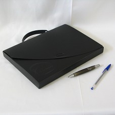 CANETA ESFEROGRÁFICA COM CORPO EM RESINA CINZA, EM DEGRADÊ, E DETALHES EM PLÁSTICO PRATEADO, IMITANDO METAL. POSSUI A LOGOMARCA DA 'ORQUESTRA SINFÔNICA PETROBRAS', EM PRATEADO. ACONDICIONADA EM PASTA PLÁSTICA, NA COR PRETA, COM ALÇA, E LOGOMARCA DA ORQUESTRA NA PARTE FRONTAL.