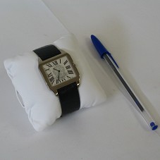 RELÓGIO DE PULSO, DA MARCA 'CARTIER', COM PULSEIRA EM COURO PRETO, FECHO EM OURO BRANCO 18K E PRATA 750. COROA ARREMATADA COM UMA PEDRA AZUL LAPIDADA, SAFIRA. POSSUI MARCADOR COM NÚMEROS ROMANOS E, NO CENTRO, O SÍMBOLO DA REPÚBLICA FEDERATIVA DO BRASIL. NA PARTE POSTERIOR, A GRAVAÇÃO 'CARTIER 2005 / ANNÉE DU BRÉSIL / LUIS INÁCIO LULA DA SILVA / Nº 01/20 / WATER RESISTANT / ...'. ACOMPANHA DOIS LIVRETOS, UM COM CERTIFICADO DE GARANTIA, DE NÚMERO 265122285 CE, DATADO DE 11 DE JULHO DE 2005; E OUTRO, COM INSTRUÇÕES DE USO. ACOMPANHA ESTOJO PEQUENO EM CAMURÇA CINZA, COM A MARCA DA LOJA. ACONDICIONADO EM CAIXA VERMELHA.