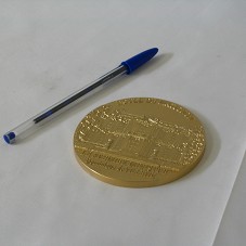 MEDALHA (90 MM) EM BRONZE. POSSUI, NO ANVERSO, DESENHO DA FACHADA DE UM PRÉDIO, DOIS ANDARES, ESTILO CLÁSSICO, COM VEGETAÇÃO NAS LATERAIS; E A INSCRIÇÃO 'HOTEL DE MATIGNON / LE PREMIER MINISTRE DOMINIQUE DE VILLEPIN'. NO REVERSO, 'À SON EXCELLENCE MONSIEUR LUIZ INÁCIO LULA DA SILVA / PRÉSIDENT DE LA REPUBLIQUE FÉDÉRATIVE DU BRÉSIL / 15 JUILLET 2005'. NA LATERAL DA PEÇA, 'BRONZE FIA ED.'. ACONDICIONADA EM ESTOJO AZUL MARINHO.
