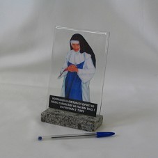 PLACA EM VIDRO (12,5X18,5 CM) FIXADA EM BASE (12X5X2 CM) DE GRANITO ACINZENTADO. POSSUI FOTO DA IRMÃ DULCE E A INSCRIÇÃO 'HOMENAGEM DA DIRETORIA DE ESPORTE DO GRÊMIO COMUNITÁRIO DA VILA IRMÁ DULCE E DO PROGRAMA 2º TEMPO'.