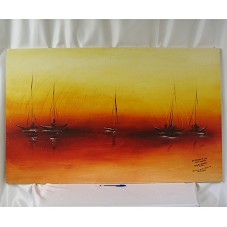 PINTURA (127,5X80 CM) SOBRE TELA, RETRATANDO ALGUMAS JANGADAS NO MAR. PREDOMINA OS TONS DE VERMELHO E AMARELO, COMO SE FOSSE UM PÔR-DO-SOL. NO CANTO INFERIOR DIREITO, ASSINATURA DO ARTISTA 'GEDEAN TAVARES 2005'. ABAIXO, A INSCRIÇÃO 'AO PRESIDENTE LULA NOSSO CARINHO, SUZANO MARQUES E FAMÍLIA / APARECIDA DO RIO NEGRO - TO / 10/08/2005'.