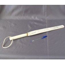 CHICOTE EM COURO (52,5X5X0,5 CM) COM ALÇA PARA SEGURAR, DE COR CLARA. POSSUI ASSINATURA E NOMES DE DIVERSOS PREFEITOS DO ESTADO DO RIO GRANDE DO SUL.