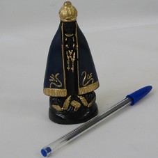 IMAGEM DE NOSSA SENHORA APARECIDA (11 CM) EM CERÂMICA, NA COR PRETA COM DETALHES EM DOURADO. POSSUI A INSCRIÇÃO 'FELIZ ANIVERSÁRIO / POUSO ALEGRE-MG / 06/10/2005 / DITINHA'.