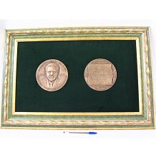 QUADRO (73X50 CM), EMOLDURANDO MEDALHA (15 CM DE DIÂMETRO), MOSTRANDO AS DUAS FACES DA MESMA. NO ANVERSO, EFÍGIE DO PRESIDENTE LUIZ INÁCIO LULA DA SILVA E A INSCRIÇÃO 'HIS EXCELLENCY LUIZ INÁCIO LULA DA SILVA / PRESIDENT OF THE FEDERATIVE REPUBLIC OF BRAZIL / FAO / ROME', E ASSINATURA DO ARTISTA, 'S. GIRLANDA'. NO REVERSO, A INSCRIÇÃO 'SE, AO FINAL DO MEU MANDATO, TODOS OS BRASILEIROS TIVEREM A POSSIBILIDADE DE TOMAR CAFÉ DA MANHÃ, ALMOÇAR E JANTAR, TEREI CUMPRIDO A MISSÃO DA MINHA VIDA'. MOLDURA EM MADEIRA TRABALHADA EM ALTO RELEVO, COM PÁTINA EM VERDE E DOURADO. POSSUI FUNDO EM VELUDO VERDE, E MEDALHAS DISPOSTAS NO CENTRO.