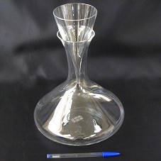 JARRA EM CRISTAL (19X19X22 CM), COM BASE ABAULADA, AFUNILANDO NA BOCA (TIPO DECANTADOR). ACOMPANHA PEÇA (8,5X8,5X16 CM) EM MESMO MATERIAL, PARECIDA COM UM FUNIL; E, FOLHETO DA FÁBRICA. PEÇAS ELABORADAS ARTESANALMENTE, COM MOLDES ORIGINAIS NOS SÉCULOS XVIII E XIX. ACONDICIONADA EM CAIXA DE PAPELÃO AZUL MARINHO, COM NOME E LOGOMARCA DA FÁBRICA NA FRENTE.