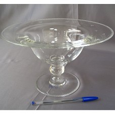 COMPOTEIRA EM CRISTAL (24,5X24,5X15 CM), COM BORDAS LARGAS, TRABALHADAS NA PARTE POSTERIOR, COM DESENHOS FOSCOS. ACOMPANHA FOLHETO DA FÁBRICA. PEÇA ELABORADA ARTESANALMENTE, COM MOLDES ORIGINAIS NOS SÉCULOS XVIII E XIX. ACONDICIONADA EM CAIXA DE PAPELÃO AZUL MARINHO, COM NOME E LOGOMARCA DA FÁBRICA NA FRENTE.