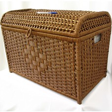 BAÚ (70X40X50 CM) EM VIME E PALHA/SISAL, NA COR MARROM ESCURA, COM ARGOLA EM MESMO MATERIAL, FUNCIONANDO COMO PUXADOR, E DUAS ABERTURAS LATERAIS (ALÇAS).