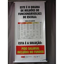 DOIS CARTAZES (120X59 CM), TIPO BANNER, COM A INSCRIÇÃO 'ESTE É O DRAMA DE MILHÕES DE FUNCIONÁRIOS (AS) DE ESCOLA: TABELA DE SALÁRIOS / ESTA É A SOLUÇÃO: PISO SALARIAL INCLUÍDO NO FUNDEB'.