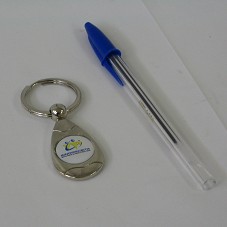 CHAVEIRO (2,5X8 CM) EM METAL PRATEADO, EM FORMATO DE GOTA. NA FRENTE, CÍRCULO BRANCO, COM A INSCRIÇÃO 'SINDIRECEITA / SINDICATO NACIONAL DOS TÉCNICOS DA RECEITA FEDERAL' E LOGOMARCA. ACONDICIONADO EM CAIXA DE PAPELÃO VERMELHO.