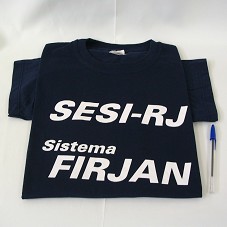 DUAS CAMISETAS IGUAIS (TAM XG E XXG) EM MALHA AZUL MARINHO, DE MANGA CURTA. NA FRENTE, A INSCRIÇÃO 'SESI -RJ / SISTEMA FIRJAN', EM BRANCO. ATRÁS, LOGOMARCAS DAS INSTITUIÇÕES PARTICIPANTES: SISTEMA FIRJAN, 'SESI / A MARCA DA RESPONSABILIDADE SOCIAL', 'MINISTÉRIO DA EDUCAÇÃO' E 'GOVERNO FEDERAL'.