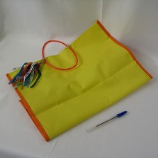 SACOLA/BOLSA (43X32,5X18,5 CM) EM LONA AMARELA, COM DETALHES LARANJAS NAS COSTURAS, LATERAIS E ALÇA. ACOMPANHA UM CHAVEIRO, TIPO GANCHO, COM DIVERSAS FITAS COLORIDAS (ESTILO 'FITA DO SENHOR DO BONFIM') PRESAS A ELE, CADA UMA COM UMA PALAVRA ESCRITA NELA: 'MODA / DESENVOLVIMENTO / ESTILO / DESIGN E TECNOLOGIA / COMPETITIVIDADE / RESPONSABILIDADE SOCIAL / FASHION RIO / SISTEMA FIRJAN / PRIMAVERA-VERÃO 2006 / FASHION BUSINESS'.