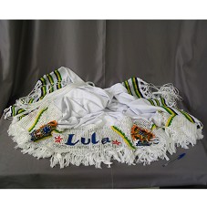 REDE DE BALANÇO/DESCANSO EM ALGODÃO BRANCO. POSSUI FRANJAS BRANCAS EM CROCHÊ, COM O SÍMBOLO DA REPÚBLICA FEDERATIVA DO BRASIL PINTADO, BEM COMO A INSCRIÇÃO 'LULA PRESIDENTE DO BRASIL / PT'. NAS EXTREMIDADES, FITAS EM AZUL, AMARELO E VERDE COSTURADAS.
