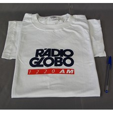 CAMISETA (TAM GG), EM MALHA BRANCA, DE MANGA CURTA. NA FRENTE, ESTAMPA EM AZUL E VERMELHO, 'RÁDIO GLOBO / 1220 AM'.