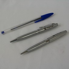 CONJUNTO DE CANETA ESFEROGRÁFICA E LAPISEIRA (13 CM) EM METAL PRATEADO FOSQUEADO, COM DETALHES EM METAL POLIDO. NA PARTE SUPERIOR, GRAVAÇÃO 'BR FPSO P-50' EM CINZA ESCURO E LOGOMARCA DA PETROBRÁS. ACONDICIONADO EM ESTOJO PLÁSTICO IMITANDO METAL, COM BORDAS OVALADAS.