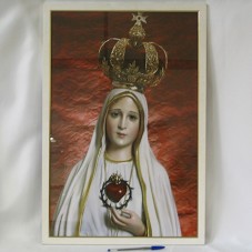 QUADRO (43X63 CM) COM FOTOGRAFIA IMPRESSA DA IMAGEM DO SAGRADO CORAÇÃO DE MARIA. POSSUI MOLDURA BRANCA COM TAMPO DE VIDRO.