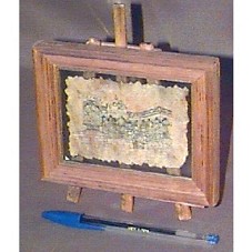 PEQUENO QUADRO (118X146MM) CONTENDO DESENHO FEITO EM COURO ENVELHECIDO, COM TINTA PRETA, RETRATANDO A FACHADA DA 'CASA ROSELL', MONUMENTO NACIONAL SITUADO NA AVENIDA GRAU, DA CIDADE DE BARRANCO, NO PERU. MOLDURA EM MADEIRA E PROTEÇÃO DE VIDRO. SUPORTE EM MADEIRA, IMITANDO UM CAVALETE. ACOMPANHAM DOIS FOLHETOS PUBLICITÁRIOS INTITULADOS 'BARRANCO / LIMA - PERU / HISTORIA Y TRADICIÓN / MARTÍN DEL POMAR / ALDALDE'. ACONDICIONADO EM SACOLA DE PAPEL, QUE TRAZ UM DESENHO QUE REPRODUZ A FACHADA DE UMA BIBLIOTECA.