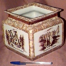 VASO (16X17X17CM) EM PORCELANA, TRAZENDO EM UM DE SEUS QUATRO LADOS DESENHO QUE RETRATA A UNIVERSIDADE ESTADUAL DE LONDRINA (PEROBAL) E A INSCRIÇÃO 'HOMENAGEM POR OCASIÃO DA VISITA A LONDRINA. PARANÁ. / NEDSON MICHELETI, PREFEITO / 12, ABRIL 2003', E NOS DEMAIS LADOS DESENHOS DO MUSEU HISTÓRICO DE LONDRINA, DA CATEDRAL DE LONDRINA E DO LAGO IGAPÓ. ACOMPANHAM NOVE POSTAIS DA CIDADE DE LONDRINA-PR. ACONDICIONADO EM CAIXA DE PAPELÃO.