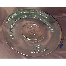 LÂMINA DE ARADO (42,5CM) EM METAL PRATEADO, TRAZENDO GRAVADOS UMA LOGOMARCA E A INSCRIÇÃO 'SOCIEDADE RURAL DO PARANÁ / 43ª EXPOSIÇÃO AGROPECUÁRIA E INDUSTRIAL / 2003 / LONDRINA / LUIZ INÁCIO LULA DA SILVA'.