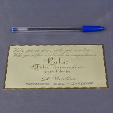 PLACA (14,5X9 CM) EM PRATA DOURADA, COM BORDA POLIDA E TRABALHADA. POSSUI A INSCRIÇÃO 'VIDA QUE SE DOA, VIDA QUE CONSTRÓI. VIDA QUE EDIFICA E ESTIMULA OS COMPANHEIROSL LULA, FELIZ ANIVERSÁRIO / 27 OUTUBRO 86 / A DIRETORIA / STIMMME SBC E DIADEMA'. ACONDICIONADA EM ESTOJO FORRADO DE TECIDO AZUL CLARO.