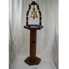 SINO EM BRONZE (22X22X30 CM) FIXADO ARCO (40X6X67 CM) DE MADEIRA, E ESTE, EM PEDESTAL DE MESMO MATERIAL (46X46X107 CM). BASE SUPERIOR DO PEDESTAL FORRADA EM VELUDO AZUL, E COM PLACA METÁLICA FIXADA, ONDE HÁ A INSCRIÇÃO 'EXMO. SR. PRESIDENTE DA REPÚBLICA LUIZ INÁCIO LULA DA SILVA / LANÇAMENTO DA LICITAÇÃO DO PROGRAMA DE MODERNIZAÇÃO E EXPANSÃO DA FROTA NACIONAL DE PETROLEIROS: MARCO HISTÓRICO DA REVITALIZAÇÃO DA INDÚSTRIA NAVAL BRASILEIRA. / DESENVOLVIMENTO, EMPREGO, RENDA E SOBERANIA PARA O BRASIL / JOSÉ SERGIO GABRIELLI / PRESIDENTE DA PETRÓLEO BRASILEIRO S/A / SERGIO MACHADO / PRESIDENTE DA PETROBRÁS TRANSPORTE S/A'. POSSUI DETALHES EM CORDA BRANCA, COM NÓS DE MARINHEIRO, ENROLADA NO ARCO DE MADEIRA.