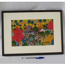 PINTURA SOBRE TELA (19,5X30,5 CM), EM TONS COLORIDOS, PREDOMINADO O VERDE, AMARELO, VERMELHO E AZUL. RETRATA HOMENS E MULHERES DANÇANDO E CANTANDO, COMO SE ESTIVESSEM FESTEJANDO O NASCIMENTO DE UMA CRIANÇA, QUE ESTÁ SENDO CARREGADA NUM MANTO. O CENÁRIO É DE UMA VILA, COM MUITA VEGETAÇÃO AO REDOR. NO CANTO INFERIOR DIREITO, ASSINATURA DO ARTISTA 'MALDONADO DÍAZ 2005'. ATRÁS, DUAS ETIQUETAS COM INFORMAÇÕES SOBRE A PEÇA, SENDO QUE UMA DELAS CHEGOU RASGADA. MOLDURA (31,5X42,5 CM) EM MADEIRA ESCURA E PASSE-PARTOUT CREME (ESTE APRESENTA ALGUMAS MANCHAS). ACONDICIONADO EM CAIXA DE PAPELÃO BRANCO, COM ETIQUETA COM DADOS DO PRESIDENTE LULA.