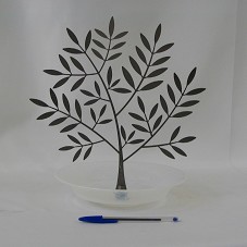 CENTRO DE MESA COMPOSTO POR UM PRATO (22X22X3,5 CM) FUNDO EM MURANO BRANCO LEITOSO, E REPRESENTAÇÃO DE UMA OLIVEIRA(29X29,5X0,2 CM) EM FOLHA DE AÇO ATARRACHADA NO CENTRO DO PRATO. POSSUI ASSINATURA DO ARTISTA GRAVADA NO CAULE DA ÁRVORE. A OLIVEIRA, COM SIGNIFICADO SAGRADO, REPRESENTA LONGEVIDADE, PAZ E VITÓRIA. ACOMPANHA FOLHETO EM TRÊS IDIOMAS, COM INFORMAÇÕES SOBRE A PEÇA. ACONDICIONADO EM EMBALAGEM DE PAPELÃO COM A INSCRIÇÃO 'BOAS FESTAS E PRÓSPERO ANO NOVO' ESCRITA EM CINCO LÍNGUAS; E COM A MARCA DA 'NESTLÉ'.