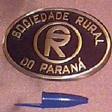FIVELA DE CINTO EM METAL DOURADO E PRETO, TRAZENDO GRAVADOS UMA LOGOMARCA E A INSCRIÇÃO 'SOCIEDADE RURAL DO PARANÁ'.