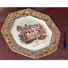 PRATO (26,5CM) OCTOGONAL EM PORCELANA, TRAZENDO DESENHO QUE REPRESENTA A FACHADA DA SANTA CASA DE LONDRINA. SUPORTE EM ACRÍLICO TRANSPARENTE. ACOMPANHA CARTÃO DO SR. FAHD HADDAD. ACONDICIONADO EM CAIXA DE PAPELÃO.