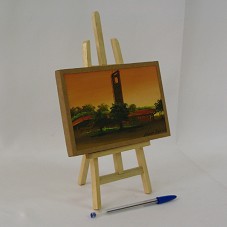 PINTURA SOBRE TELA (18,5X10,5 CM), RETRATANDO O MONUMENTO DO MARCO ZERO, COM VEGETAÇÕES AO REDOR. PREDOMINA OS TONS DE VERDE E MARROM. NO CANTO INFERIOR DIREITO, ASSINATURA DO ARTISTA, 'WAGNER RIBEIRO / 01'. MOLDURA (18,5X10,5 CM) CONFECCIONADA EM PAPEL CRAFT, COLADA NA PRÓPRIA ESTRUTURA DA TELA. ATRÁS, A INSCRIÇÃO 'OBRA: MONUMENTO DO MARCO ZERO DO EQUADOR / AUTOR: WAGNER RIBEIRO / MACAPÁ-AMAPÁ-BRASIL'. ACOMPANHA MINIATURA DE CAVALETE DE MADEIRA (12,5X11X28,5 CM). ACONDICIONADO EM CAIXA DE PAPELÃO COM A INSCRIÇÃO 'ARTES DO AMAPÁ' NA TAMPA.