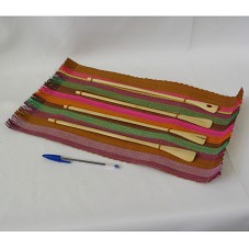 PAINEL EM ESTEIRA DE BURITI (46,5X29 CM), PINTADO EM TONS DE LILÁS, VERDE, MARROM E AMARELO. FIXADAS NELE, QUATRO COLHERES DE BAMBU (32 CM CADA), UMA DIFERENTE DA OUTRA. ACONDICIONADOS EM EMBALAGEM PRÓPRIA, EM PAPELÃO, FORRADA EM PAPEL RECICLADO COM A INSCRIÇÃO 'MISTURA BRASILEIRA CAIXA', NA TAMPA. E, NA PARTE INTERNA, DESCRIÇÃO DO PROJETO APOIADO PELA CAIXA ECONÔMICA FEDERAL, 'PROJETO ARTESANATO BRASIL COM DESIGN'. OBJETO FAZ PARTE DA COLEÇÃO 'MISTURA BRASILEIRA'.
