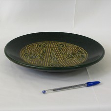 PRATO DECORATIVO (27,5X27,5X3,5 CM) EM CERÂMICA, PINTADO EM VERDE, COM INCISÃO DE MOTIVOS MARAJOARAS, NA COR AMARELA E MARROM. ACONDICIONADO EM EMBALAGEM PRÓPRIA, EM PAPELÃO, FORRADA EM PAPEL RECICLADO COM A INSCRIÇÃO 'MISTURA BRASILEIRA CAIXA', NA TAMPA. E, NA PARTE INTERNA, DESCRIÇÃO DO PROJETO APOIADO PELA CAIXA ECONÔMICA FEDERAL, 'PROJETO ARTESANATO BRASIL COM DESIGN'. OBJETO FAZ PARTE DA COLEÇÃO 'MISTURA BRASILEIRA'.