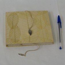 MARCADOR DE LIVRO (2,5X1X0,5 CM), NO FORMATO DE UMA FOLHA, COM DESENHOS MARAJOARAS, EM PRATA E CASCA DE COCO, COM CORDA DE PALHA (39 CM). ACOMPANHA BLOCO DE ANOTAÇÕES (15X15X1 CM) CONFECCIONADO EM PAPEL RECICLADO, COM CAPAS EM PAPELÃO FORRADO E FOLHAS DESIDRATADAS. ACONDICIONADOS EM EMBALAGEM PRÓPRIA, EM PAPELÃO, FORRADA EM PAPEL RECICLADO COM A INSCRIÇÃO 'MISTURA BRASILEIRA CAIXA', NA TAMPA. E, NA PARTE INTERNA, DESCRIÇÃO DO PROJETO APOIADO PELA CAIXA ECONÔMICA FEDERAL, 'PROJETO ARTESANATO BRASIL COM DESIGN'. OBJETO FAZ PARTE DA COLEÇÃO 'MISTURA BRASILEIRA'.