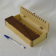 CAIXA RETANGULAR MULTIUSO (24,1X11X4,9 CM), COM UMA DIVISÓRIA INTERNA, CONFECCIONADA EM MARCHETARIA, COM MADEIRAS CLARA E ESCURA DA REGIÃO DE LONDRINA. A TAMPA SE ABRE COMO PORTA, EM DUAS FOLHAS. ACONDICIONADA EM EMBALAGEM PRÓPRIA, DE PAPELÃO, FORRADA EM PAPEL RECICLADO COM A INSCRIÇÃO 'MISTURA BRASILEIRA CAIXA', NA TAMPA. E, NA PARTE INTERNA, DESCRIÇÃO DO PROJETO APOIADO PELA CAIXA ECONÔMICA FEDERAL, 'PROJETO ARTESANATO BRASIL COM DESIGN'. OBJETO FAZ PARTE DA COLEÇÃO 'MISTURA BRASILEIRA'.