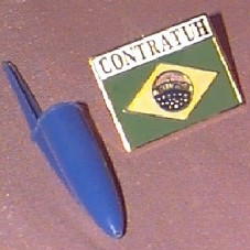 BÓTON (22X29 MM) EM METAL, REPRESENTANDO A BANDEIRA DO BRASIL E TRAZENDO A INSCRIÇÃO 'CONTRATUH'. ACONDICIONADO EM ESTOJO PRETO.