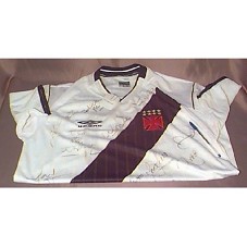 CAMISA DE FUTEBOL, AUTOGRAFADA, TRAZENDO GRAVADOS NA FRENTE UMA FAIXA PRETA DIAGONAL, O BRASÃO DO VASCO FUTEBOL CLUBE E A INSCRIÇÃO 'UMBRO', E NAS COSTAS A INSCRIÇÃO '10 / UMBRO'.