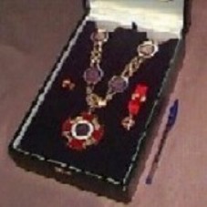 ORDEM ESTADUAL DO MÉRITO JERÔNIMO MONTEIRO, NO GRAU DE GRANDE COLAR, COMPOSTA POR: GRANDE COLAR COM INSÍGNIA, CONFECCIONADOS EM METAL DOURADO, TRAZENDO A INSÍGNIA, NO CENTRO, A EFÍGIE DO EX-GOVERNADOR DO ESPÍRITO SANTO JERÔNIMO MONTEIRO; E UMA MEDALHA CONFECCIONADA EM METAL DOURADO. ACONDICIONADA EM ESTOJO VERMELHO.