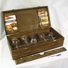 CINCO TAÇAS EM CRISTAL, CADA UMA COM UM FORMATO DIFERENTE. TODAS POSSUEM A INSCRIÇÃO 'BOHEMIA' E EM CADA UMA, 'ROYAL ALE', 'CONFRARIA CERVEJA TIPO ABADIA', 'WEISS CERVEJA DE TRIGO', 'BOHEMIA DESDE 1853' E 'CERVEJA ESCURA'. ACONDICIONADAS EM ESTOJO DE MADEIRA (59,5X28X15 CM), TENDO NA TAMPA A INSCRIÇÃO 'AMBEV'. ACOMPANHA DOIS LIVROS, 'A HARMONIA DO SABOR' (COM RECEITAS CULINÁRIAS USANDO CERVEJA) E 'HISTÓRIA, SABOR E CERVEJA', AMBOS EDITADOS PELA CONTEÚDO EXPRESSO.