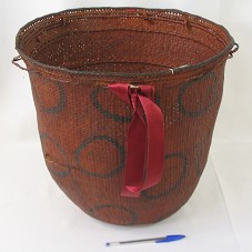 CESTA (36X39 CM), EM VIME, COM DESENHOS CIRCULARES E DUAS PEQUENAS ALÇAS. ACOMPANHA INFORMATIVO SOBRE O PRODUTO E UM CARTÃO COM A INSCRIÇÃO 'CON LOS ATENTOS SALUDOS DEL MINISTRO DE ENERGIA Y PETRÓLEO Y PRESIDENTE DE PETRÓLEOS DE VENEZUELA, S.A.'.