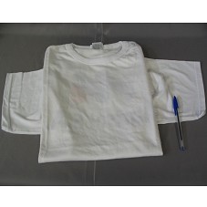 CAMISETA (TAM M) EM MALHA BRANCA, DE MANGA CURTA. ATRÁS, EM AZUL E VERMELHO, 'MARISOL S.A.' E LOGOMARCA.
