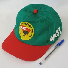 BONÉ EM BRIM VERDE, COM ABA VERMELHA. NA FRENTE, ESTAMPA COM A LOGOMARCA DO 'MOVIMENTO DOS AGRICULTORES SEM TERRA / MAST'. NAS LATERAIS, 'MAST'.