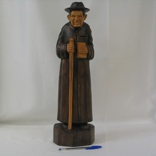 ESCULTURA EM MADEIRA (15,5X10X51 CM), FIGURA DO PADRE CÍCERO SEGURANDO A BÍBLIA, EM UMA DAS MÃOS, E UM CAJADO, NA OUTRA. VESTE SUA BATINA E CHAPÉU. NO FUNDO DA BASE, INSCRIÇÃO NÃO IDENTIFICADA, COM A DATA '25/12/2005'.