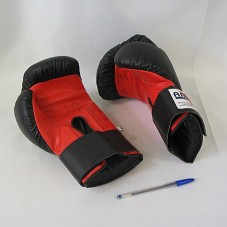 UM PAR DE LUVAS DE BOXE (TAM 12), NA COR PRETA, COM A PARTE INTERNA VERMELHA. EM AMBAS, INSCRIÇÃO EM CANETA ESFEROGRÁFICA: 'P. LULA / DEUS TE AMA E EU TAMBÉM / POPÓ' E 'SAÚDE PAZ / ESTOU COM O SENHOR SEMPRE / POPÓ'. FECHAMENTO EM VELCRO, COM ETIQUETA 'AMÉRICA / MARCA OFICIAL / CONFEDERAÇÃO BRASILEIRA DE BOXE / MADE IN BRASIL'.